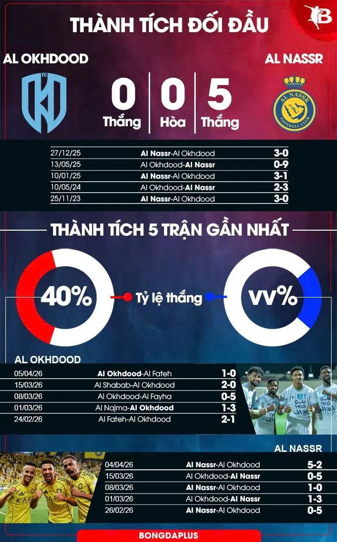 - Khả năng giữ sạch lưới: Hàng thủ Al Nassr đang trong phong độ đỉnh cao với 11 trận giữ sạch lưới trong 13 trận gần nhất. Trong khi đó, Al Akhdoud sở hữu hàng công yếu nhất giải, khiến khả năng chỉ một đội ghi bàn là rất cao.